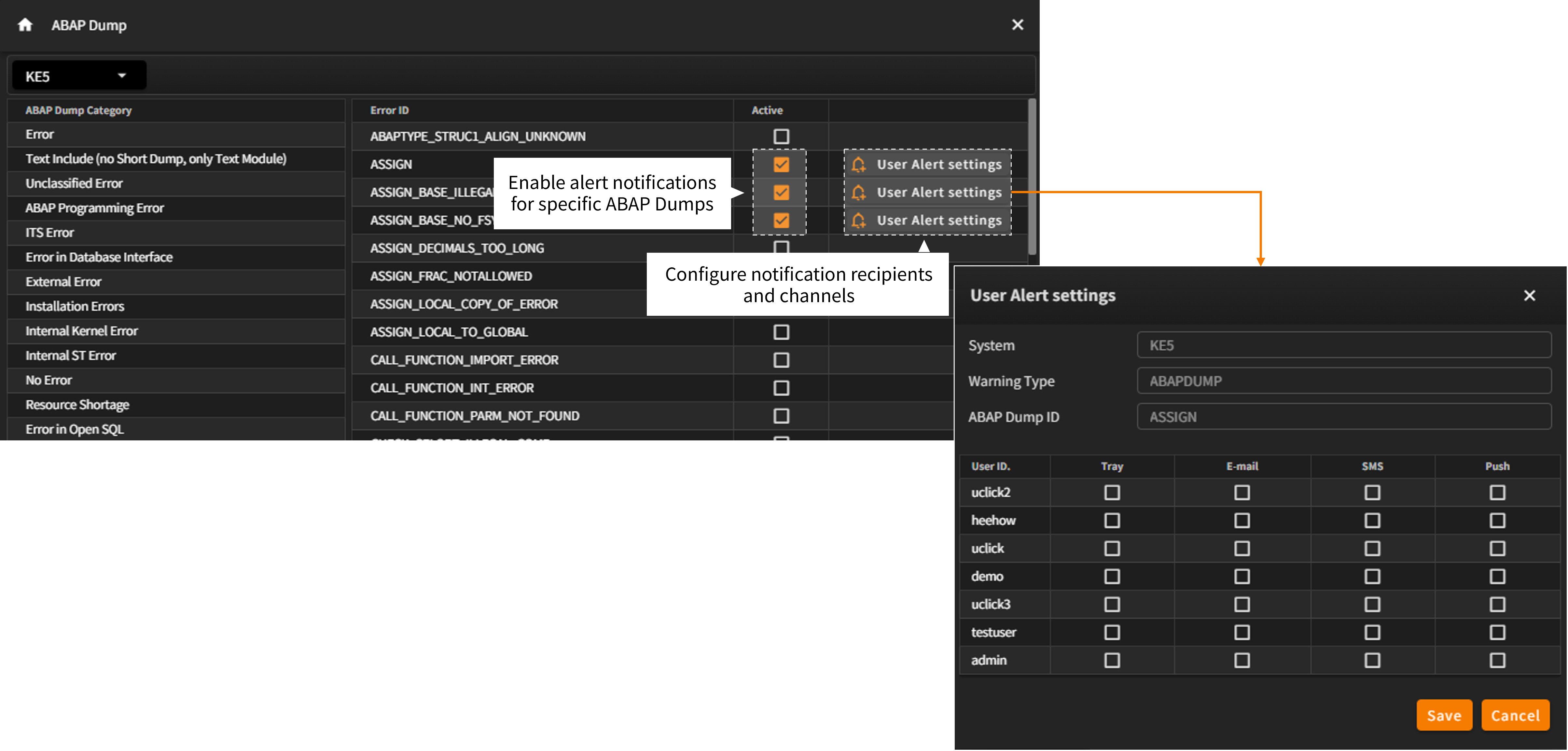 Real-time ABAP Dump occurrences, As well as System Logs and Application Logs, all in a single, consolidated view with detailed information.